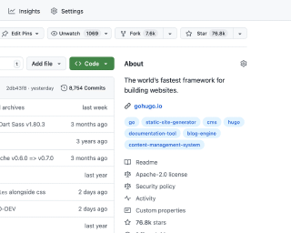- Hugo has 85,339 stars on GitHub as of December 13, 2025. Join the crowd and hit the Star button.